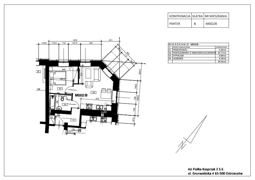 Apartament M002/B – 39,32 m²